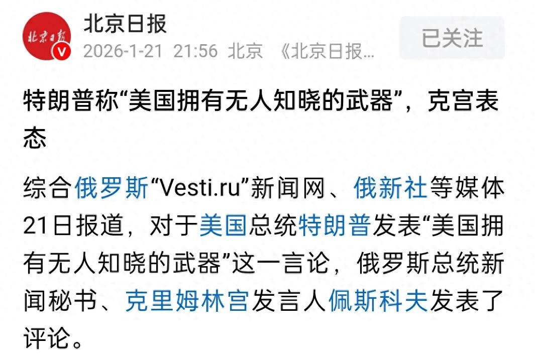 这一消息,很快引起了俄罗斯的高度关注。俄罗斯总统新闻秘书佩斯科夫表示,相关机构正在收集和分析有关声波武器的信息,并认真对待特朗普的声明。显然,在当今这个全球安全形势愈发复杂的时代,各国对于新型武器的研发与部署愈发敏感,任何一项技术进步都可能引发新一轮的军备竞赛。