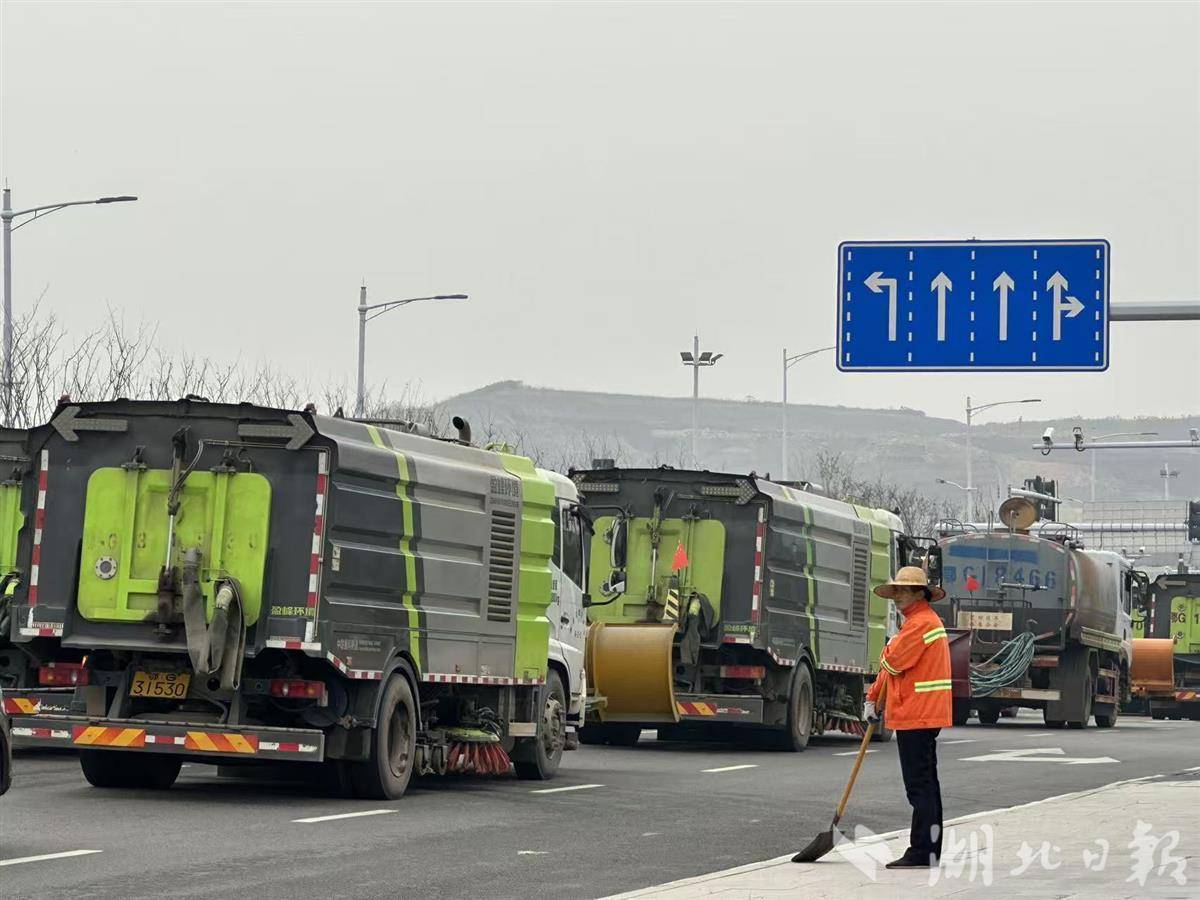 鄂州花湖机场严阵以待备战除冰雪。通讯员王星予摄