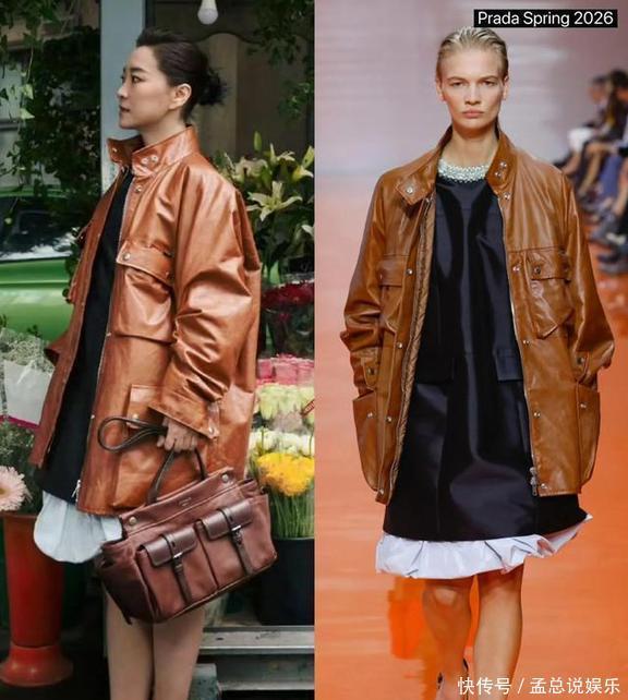 贾玲和沈传穿着Prada的皮衣在米兰男装秀上亮相,正好在春晚彩排最忙的时候,她居然还悠闲地去看时装秀,真是太可惜了她的才华。贾玲把2026年Prada早春秀的衣服穿上了,身材保持得不错,不过这套衣服在她身上看着有点臃肿,没模特穿得好看。