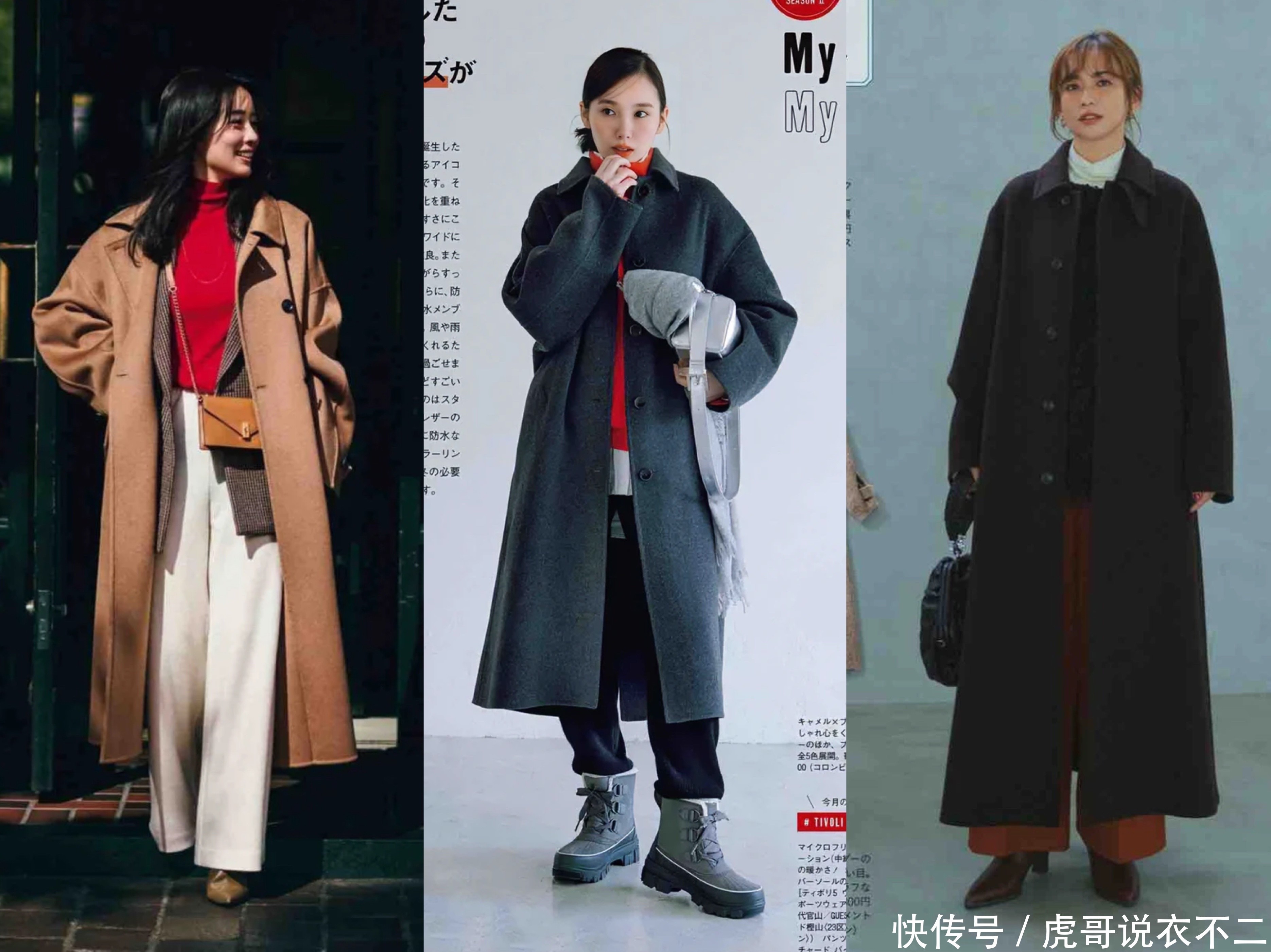 长款外套比如大衣,亦是如此,修身的毛衣内搭+高腰裤或者半身裙,总能穿出充满高级感的气场。
