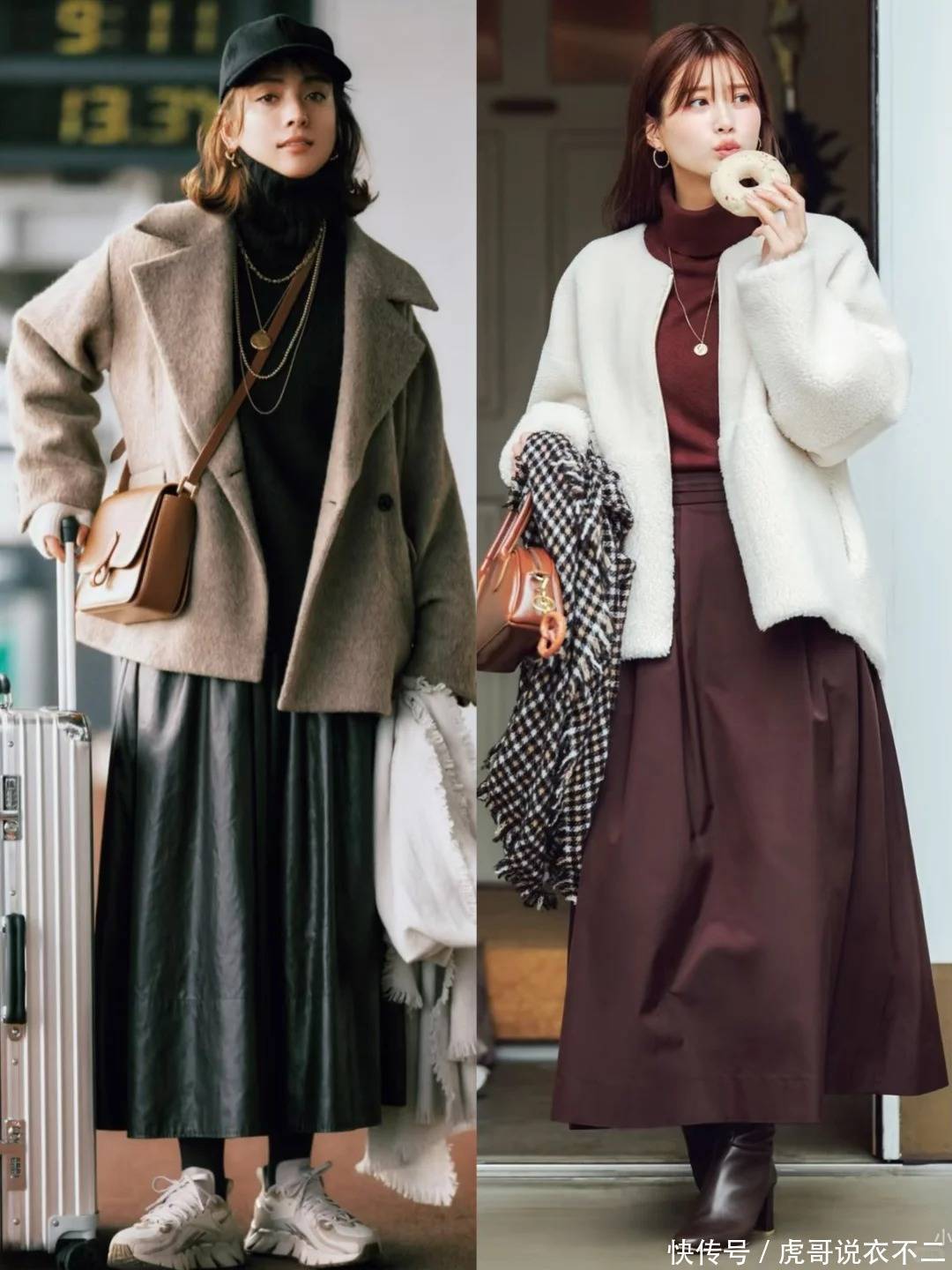 三、毛衣冬季搭配方案冬季比较常见的毛衣搭配就是叠穿,温暖个性又有层次感。