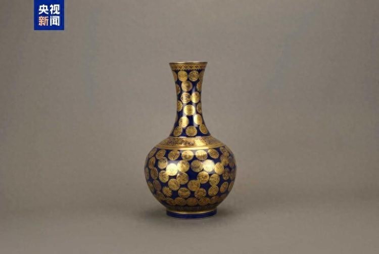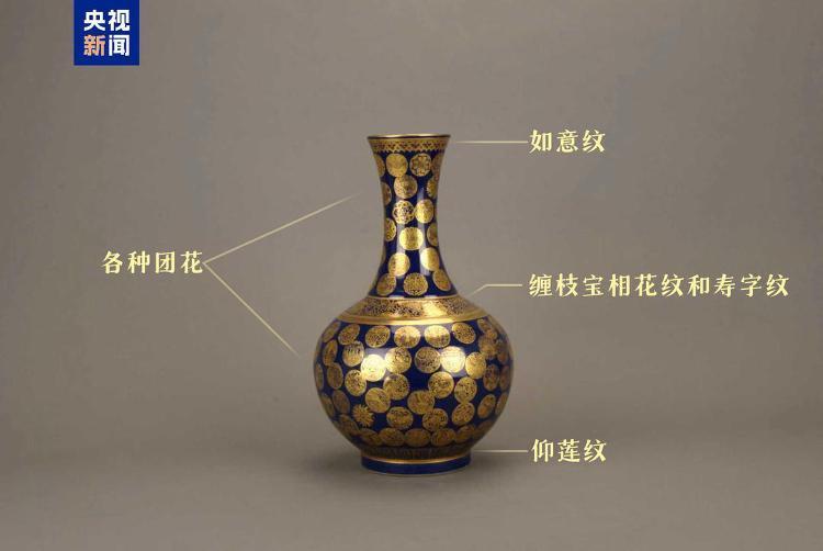 这件蓝金配色的团花赏瓶