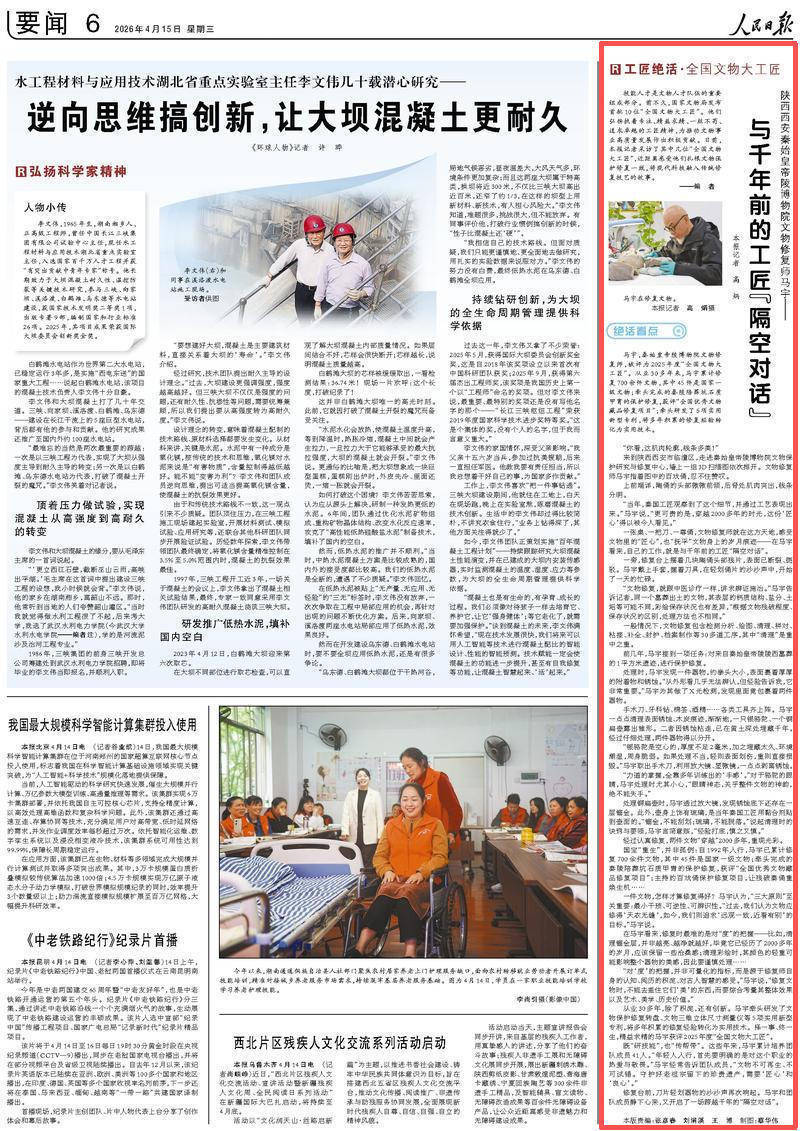 既“研技能”,也“传帮带”。这些年来,马宇累计培养团队成员41人。“年轻人入行,首先要明确的是对这个职业的热爱与敬畏。”马宇经常告诉团队成员,“文物不可再生、不可试错。守护好老祖宗留下的珍贵遗产,需要‘匠心’和‘良心’。”